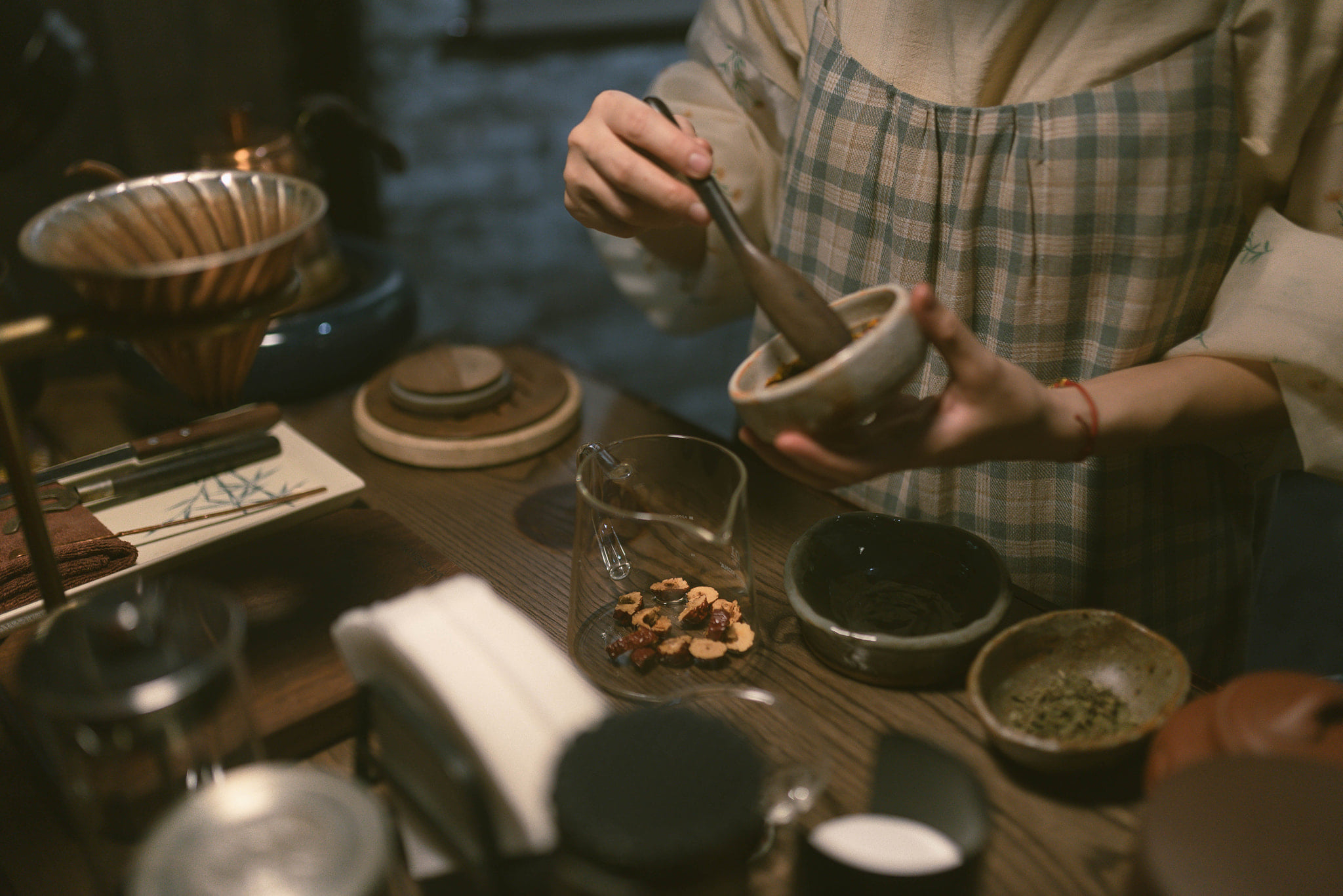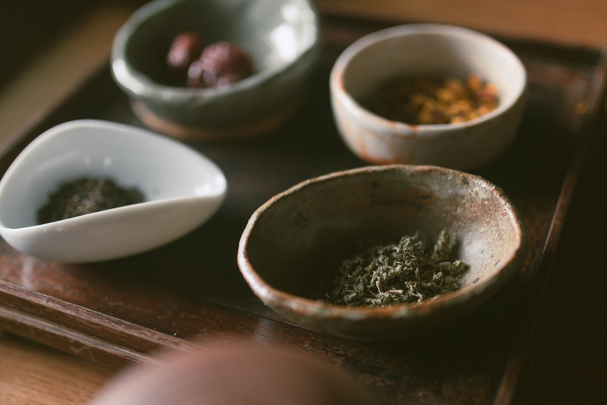 - Bạc Hà, Cúc tuyết, táo đỏ và hồng trà shan là nguyên liệu cần thiết cho ấm trà phối trộn.
