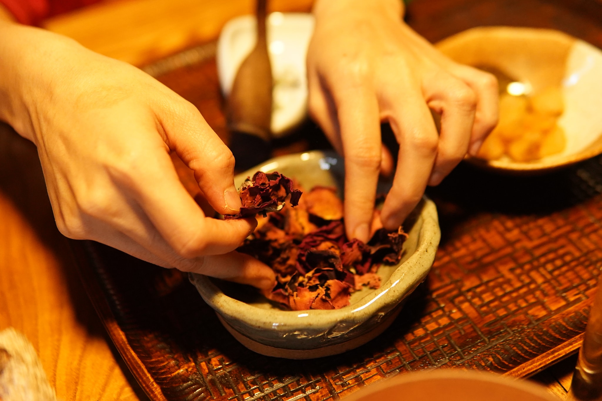 - Tách cánh hoa hồng, bỏ nhụy và đài để tránh làm trà có vị lạ, chát của hai phần này.